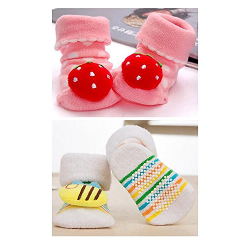 3組 ノンスリップ新生児の男の子の女の子幼児の靴下暖かいノンスキッドのストッキング赤ちゃんの誕生日のギフト6-12ヶ月の赤ちゃん-A06