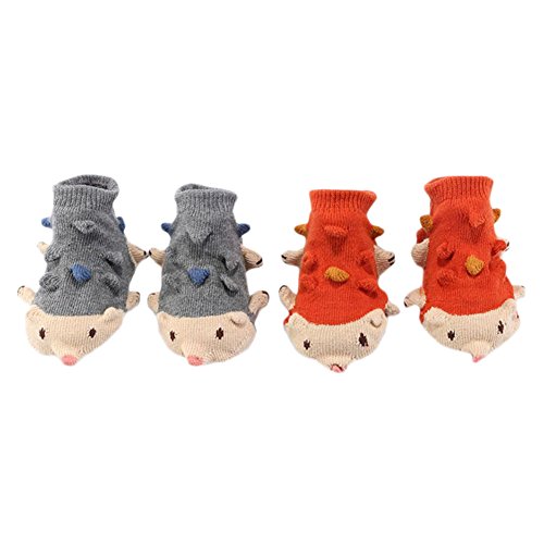 2ペアノンスリップ新生児幼児靴下ウォームストッキングベビーギフト9-11.5 0-1歳のCMベビーヘッジホッグ