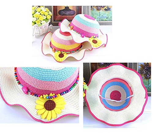 女の子サンハットプリンセスハット通気性ハットサマービーチハット[B]