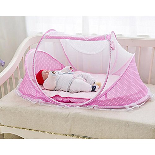 折り畳み可能な昆虫ネットのベビーベッドモスキートネットの赤ちゃんの-ピンク