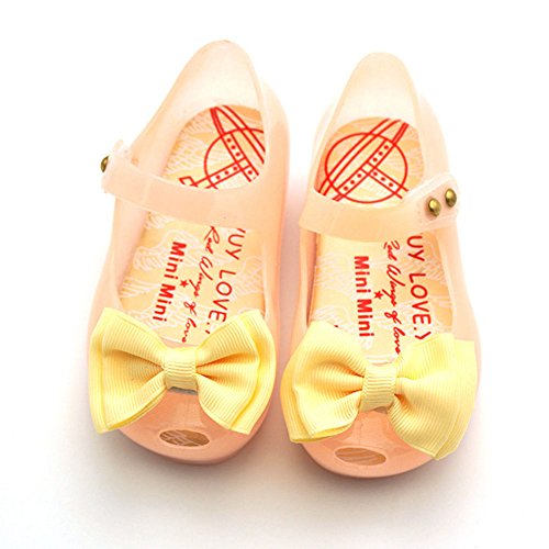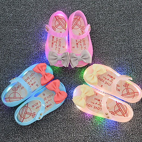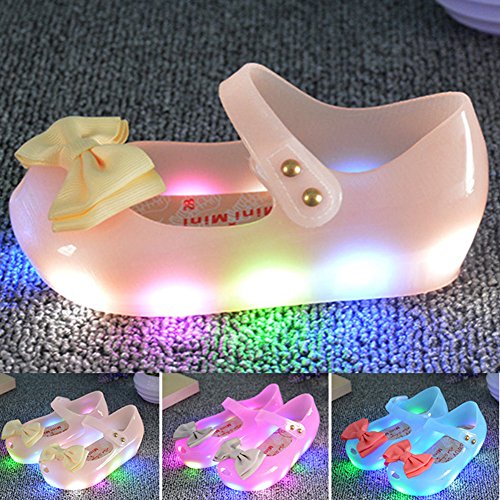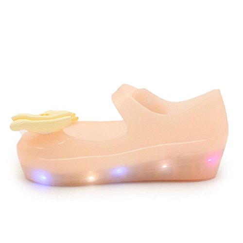 Onuneed 女の子 ベビー用シューズ 光り リボン付き 可愛い サンダル 1-3歳 (15.5, オレンジ)