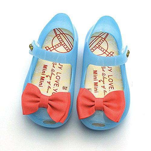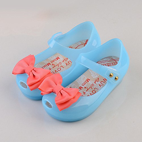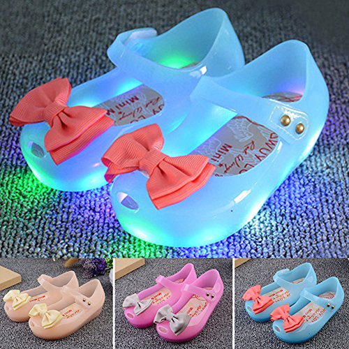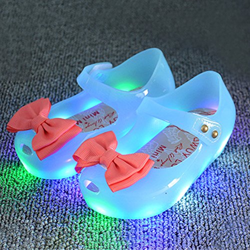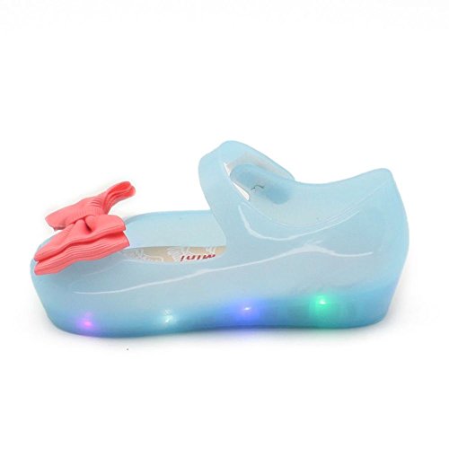 Onuneed 女の子 ベビー用シューズ 光り リボン付き 可愛い サンダル 1-3歳 (15.5, ブルー)