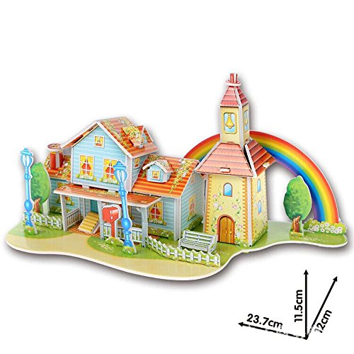 Onuneed(オンユニード) 3D 立体 パズル(風車、城、建物モデル) 子供おもちゃ,積み木 セット お誕生日、進学お祝いプレゼント (レインボーハウス)