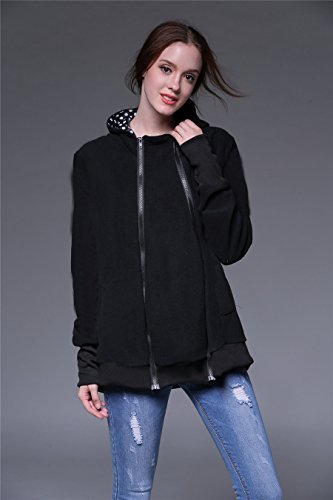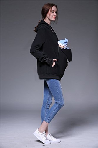 Onuneed(オンユニード) 3 In 1 ママコート マタニティ ロングパーカー 厚手 防寒 フリース カンガルー マタニティウェア 抱っこ袋付き 子供の着用 に最適 産後用 (L, ブラック) [並行輸入品]