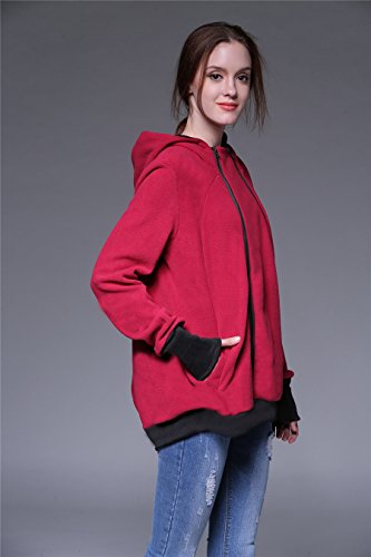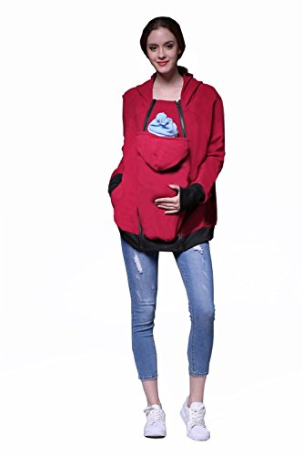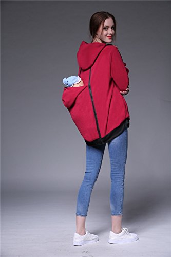 Onuneed(オンユニード) 3 In 1 ママコート マタニティ ロングパーカー 厚手 防寒 フリース カンガルー マタニティウェア 抱っこ袋付き 子供の着用 に最適 産後用 (L, レッド) [並行輸入品]