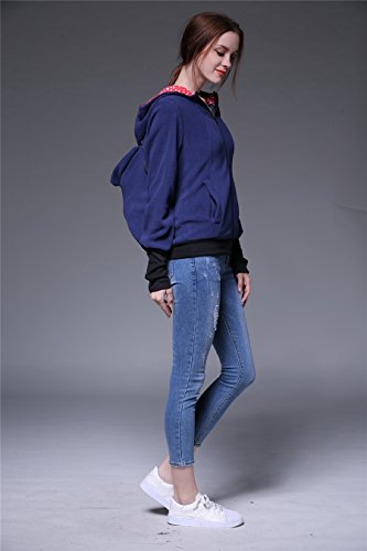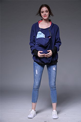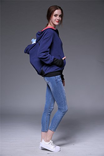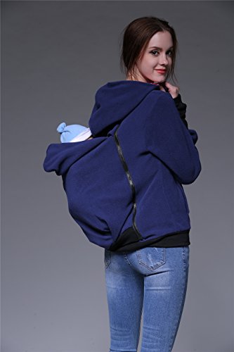 Onuneed(オンユニード) 3 In 1 ママコート マタニティ ロングパーカー 厚手 防寒 フリース カンガルー マタニティウェア 抱っこ袋付き 子供の着用 に最適 産後用 (M, ブルー) [並行輸入品]