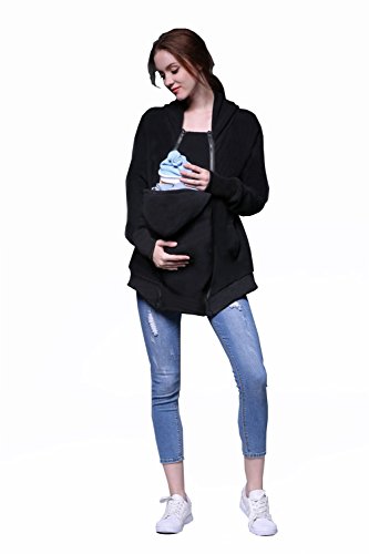 Onuneed(オンユニード) 3 In 1 ママコート マタニティ ロングパーカー 厚手 防寒 フリース カンガルー マタニティウェア 抱っこ袋付き 子供の着用 に最適 産後用 (M, ブラック) [並行輸入品]