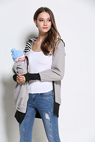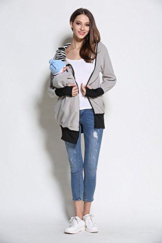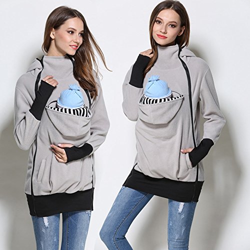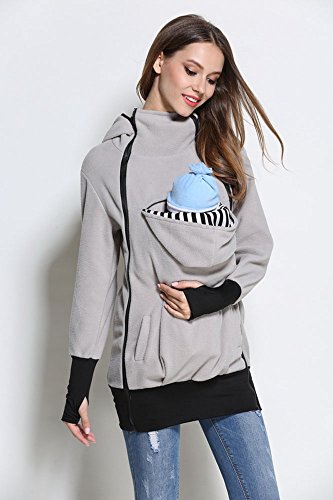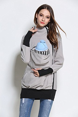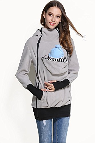 Onuneed(オンユニード) 3 In 1 ママコート マタニティ ロングパーカー フリース カンガルー マタニティウェア 抱っこ袋付き 子供の着用 に最適 産前産後兼用 (M, グレー) [並行輸入品]