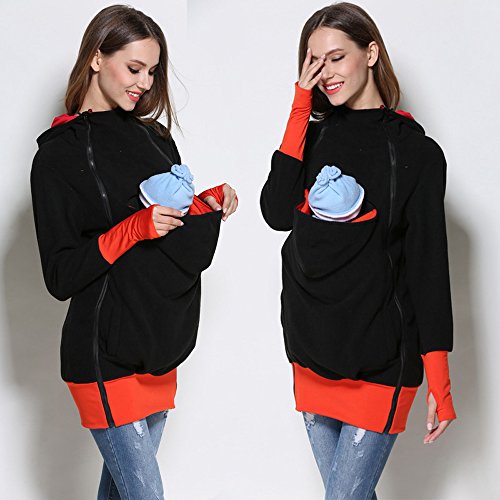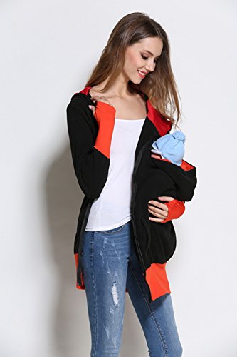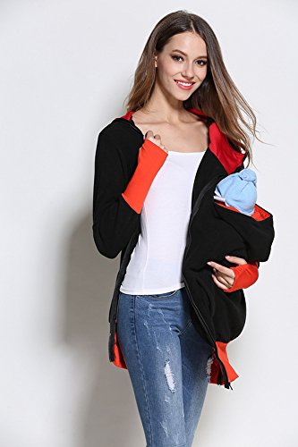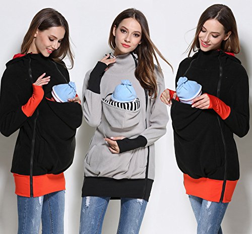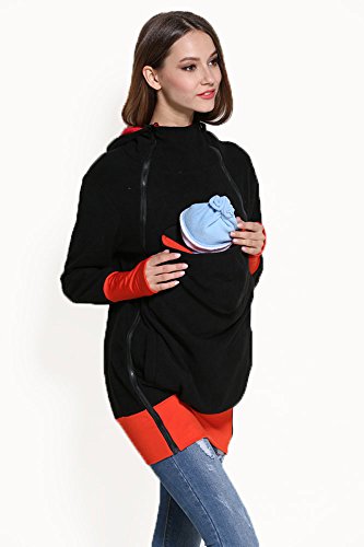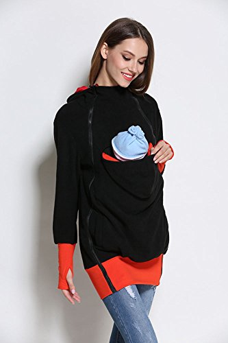Onuneed(オンユニード) 3 In 1 ママコート マタニティ ロングパーカー フリース カンガルー マタニティウェア 抱っこ袋付き 子供の着用 に最適 産前産後兼用 (XL, ブラック) [並行輸入品]