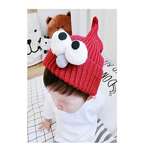 Onuneed(オンユニード)[全2色] ベビー キッズ とがったウィザード帽子 クリスマスにふわふわハット 目の大きく見開いて赤ちゃん帽子 (レッド)