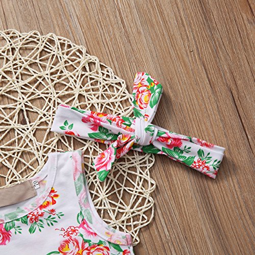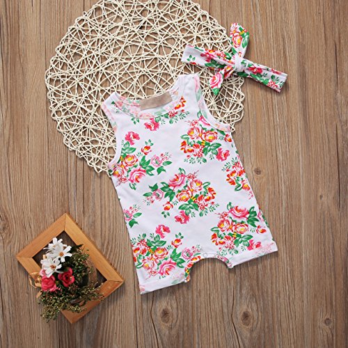 Onuneedベビー 100%綿ユニセック ロンパース 無袖 +ヘッドバンド 可愛い (80cm, 白)