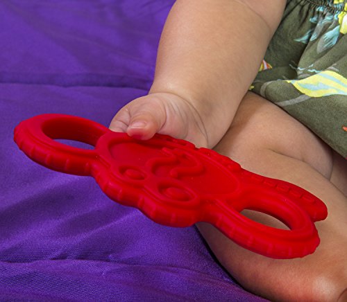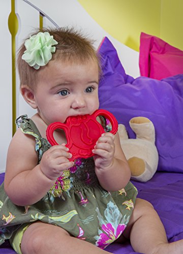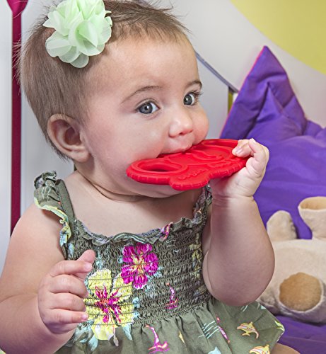 - oogaa Baby Silicone Elephant Teether - Easy Clean, Baby Safe - 8 x 3.5in - Red