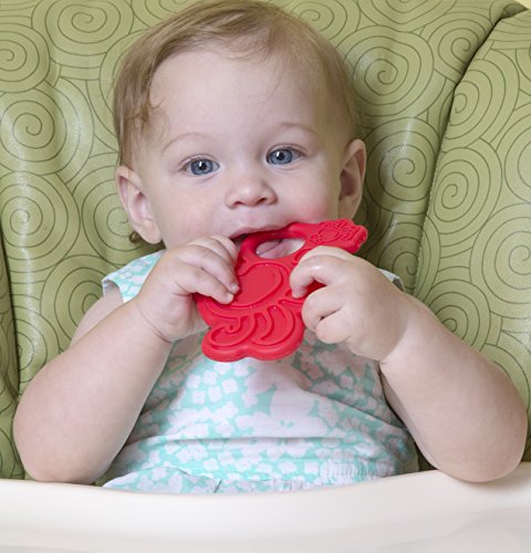 - oogaa Baby Silicone Octopus Teether - Easy Clean, Baby Safe - 7 x 3.5in - Red