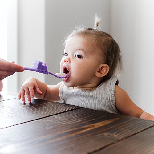 MAKE MEALTIME FUN: Featuring a charming and innovative truck aesthetic, a perfect balance between softness and hardness, and a design to fit adult hands, our Baby Mealtime Spoon is the perfect choice for parents who want to keep their toddler entertained during mealtime.;ODORLESS AND TASTELESS: We know infants can be difficult eaters. Our Baby Mealtime Spoons are odorless, tasteless, and plastic free, meaning there won't be any bad metallic or chemical taste in your baby's food.;SAFE TO USE: Our soft silicone spoons are made from 100% high-grade European approved silicone (higher than FDA standards). They are BPA, PVC, lead, and phthalate free, making them completely safe to use for feeding time with your baby. They're also mold, fungus, and bacteria resistant, can be boiled, and are microwaveable and oven safe.;EASY TO CLEAN: We know how messy toddlers can be. That's why the oogaa Mealtime Spoon is dishwasher, freezer, and electric sterilizer safe, and can be cleaned with hot soapy water for simple stain removal. Please note: Store in a dry place. Do not store in direct sunlight.;SPECIFICATIONS: Package includes 1 Purple oogaa Baby Mealtime Train Spoon. Measures 7 inches long.
