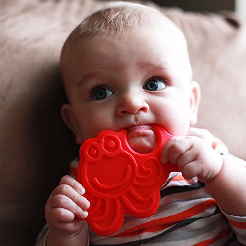 - oogaa Baby Silicone Octopus Teether - Easy Clean, Baby Safe - 7 x 3.5in - Red