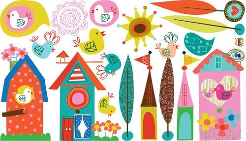 Your gal will love these sweet birdhouse fabric wall decals for setting up a sweet birdie neighborhood in her room. These oversized self-adhesive fabric stickers can be removed, repositioned and reused many times. Make a huge impact in your kids room decor in minutes and rest assured that you are using a product that is printed in the USA with non-toxic inks. All children's wall decals have the same great clarity, depth and color resolution as our stretched wall art.