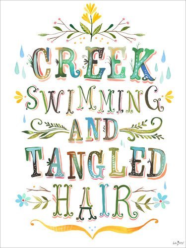 A sign of a perfect summer day is having tangled hair from hours of swimming in the creek. Katie Daisy inspires with whimsical words and fanciful typography in pleasing color palettes. Bring cheer to your walls with her delightful wall art decor. Finally, kid's wall art that can be changed as quickly as your child's tastes! Oopsy Daisy Posters That Stick are repositionable and reusable fabric wall decals featuring the same great designs as our top-selling canvas wall art. With a durable material and affordable price tag, it's easy to get creative with your artwork for kid's rooms. Long lasting non-toxic inks provide brilliant color without harming the environment and all of our children's wall decals are printed in the USA.