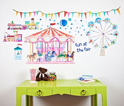 Let's go to the fair. This giant wall sticker set of a carousel, ferris wheel and many other fair favorites will create a whimsical atmosphere in your child's room. Removable and repositionable fabric based wall stickers? Brilliant, you say? We agree. Give your child the creative freedom to make their room their own without the commitment or mess that comes from making changes later on. Each Peel & Place set includes a full alphabet and number set for personalization. These oversized adhesive fabric stickers can be removed, repositioned and reused many times. Make a huge impact in your child???s space in minutes and rest assured that you are using a product that is non-toxic, green and phthalate free.