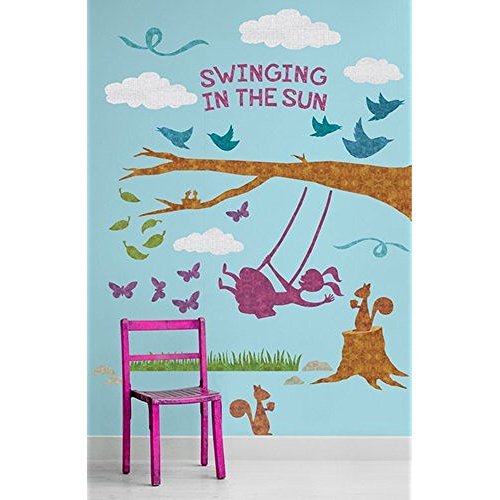 Swinging in a tree, is where we want to be! This fun silhouette set will transport your gal to a fun forest in her imagination where squirrels can talk and butterflies are her buddies. These oversized self-adhesive fabric stickers can be removed, repositioned and reused many times. Make a huge impact in your kids room decor in minutes and rest assured that you are using a product that is printed in the USA with non-toxic inks. All children's wall decals have the same great clarity, depth and color resolution as our stretched wall art.