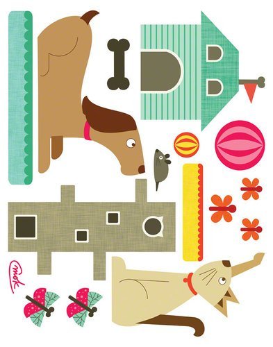 These furry friends are all fun and games! Fabric wall decal dog and cat come with their toys and comforts - pets without the responsibility. These oversized self-adhesive fabric stickers can be removed, repositioned and reused many times. Make a huge impact in your kids room decor in minutes and rest assured that you are using a product that is printed in the USA with non-toxic inks. All children's wall decals have the same great clarity, depth and color resolution as our stretched wall art.