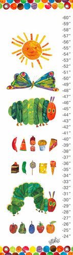 Your child will be delighted to recognize these vibrant insects created by Eric Carle. These iconic characters are featured in the book The Very Hungry Caterpillar and serves as a wonderful way to unite the joy of reading with your child's surroundings. The World of Eric Carle is beautifully reproduced in this giclee collection that features his most beloved characters.Our kid's growth charts are created on the same artist's canvas as our stretched wall art. Grommets placed in the four corners make them easy to hang. We provide color coordinated decorative covers that easily fit over the screw or nail you choose. This product creates a great childhood keepsake, and rolls up easily for safe storage. The growth chart can be wiped clean with a soft, dry or slightly damp cloth and should it wrinkle, the backside may be ironed on a low setting with light steam. A permanent marker (not included) is a great way to mark dates or ages on the chart.