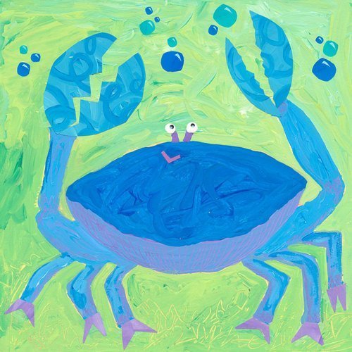 Oopsy daisy crab with bubbles stretched canvas art by stephanie bauer, 14 by 14-inch