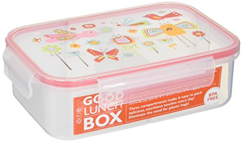 Reusable lunch box replaces disposable plastic and Styrofoam containers, bags and baggies;Transparent lunch box with three separate compartments and kid-friendly, easy-open lid with snap locks;Completely safe and free of BPA, PVC, lead, phthalates and other toxins;Microwave and top-rack dishwasher safe;Durable, functional design eliminates the need for wasteful plastic baggies and helps your family move to a waste-free lunch