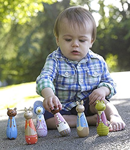 Orange Tree Toys Peter Rabbit Skittles - set of adorable Peter Rabbit skittles. Stand them up and knock them down.... these cute and colourful skittles are the perfect size for indoor play, and will provide hours of fun for your little ones. The set comes with six handcrafted, wooden skittles and two wooden balls.