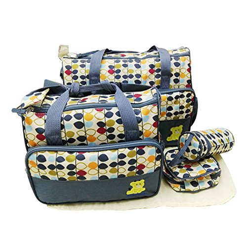 Orara beauty マザーズバッグ 可愛い ママバッグ 軽量 ハンドバッグ 5点セット おしゃれ 大容量 高機能 多機能 親子バッグセット デイリーバッグ ショルダー (ダークブルー)