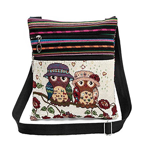 Orara beauty フクロウ 刺繍 ショッピングバッグ キャンバス レディース トートバッグ カジュアル ショルダーバッグ エコバッグ ショッピングバッグ スクールバッグ アルバイト用 (3#)