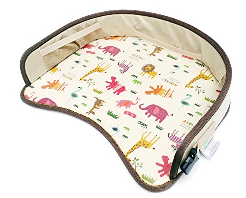 - おもちゃ、筆記具が入るポケットや、タブレット、スマホ、本を固定するホルダー、コップを置けるホルダーがついています。