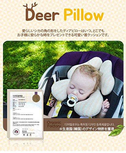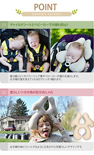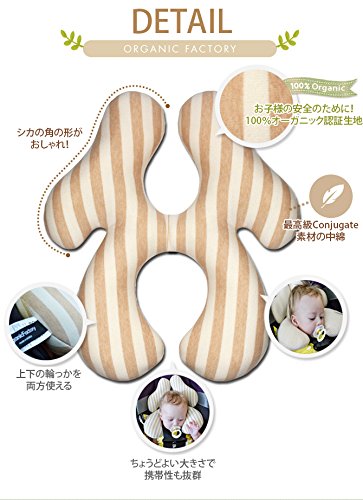 - お子様の首に合わせて上下両方の輪っかが使える、しかの角のような形が特徴的なネックピローです。