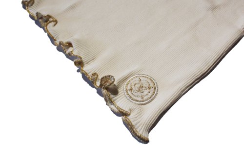 テレコ生地を採用し、上品な雰囲気と袖と裾のフリルでかわいらしさを表現しました。洗っても型くずれしにくい厚手の生地です。袖口と裾には蛍光増白剤を使用しない、金糸で淵をかがりデザインのアクセントにしました。後ろには、天然の木製ボタンを使用し着やさにも配慮しています。 日本オーガニックコットン流通機構のNOCグリーンラベルの認証札がつきます。 プレゼントなどにも最適なBOX入りです。