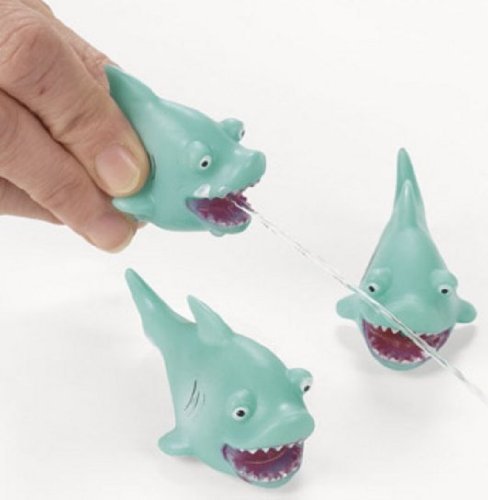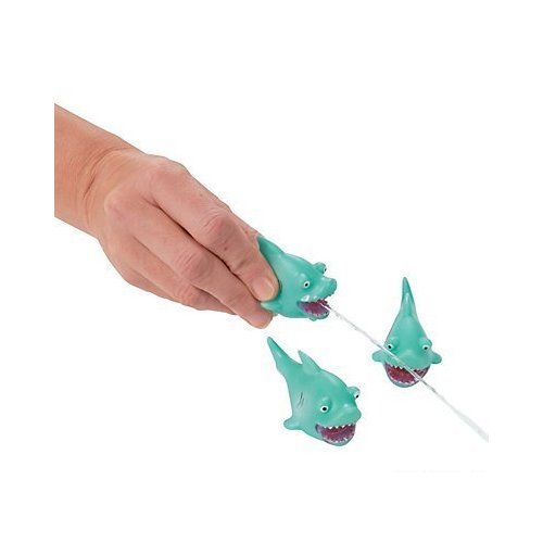Watch these little sharks frighten everyone with their surprise squirt shark attacks. These silly mini shark squirters will be an immediate hit at any pool party. 1 dozen. Measures 2 3/4 Inches. Vinyl. - 5 ounces Manufacturer Recomended Age: 36 months - 18 years