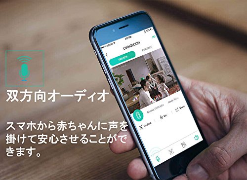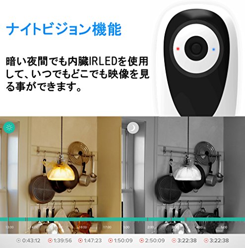 - 赤外線、暗視機能搭載で、真っ暗なお部屋でも物事の様子が見られる。双方向音声通信対応できます。カメラ本体にマイクとスピーカーを内蔵しているので、映像と共に音声も同時に再生されま、離れた場所からカメラ設置エリアへの話し掛けが可能です。