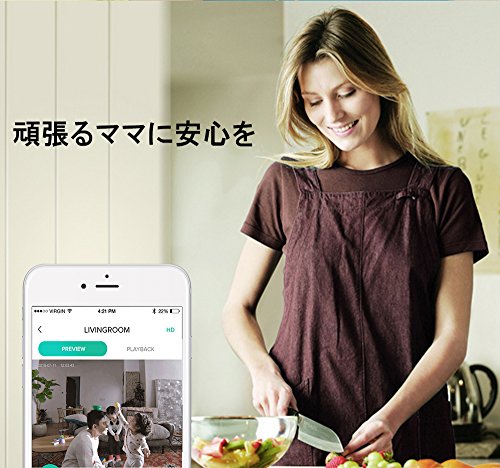 - スマホやタブレットに専用のアプリをダウンロードして、留守する時もネットワークを接続、お子様、ペットの見守り、老親の介護、留守中の宅配便や来客もチェックできます。※アプリの言語は英語になります。