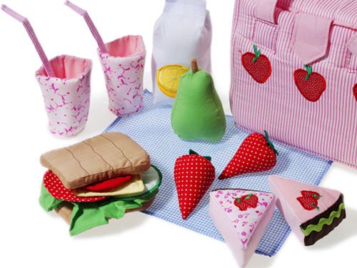 - セット内容:バスケット、洋ナシ、ジュース、サンドイッチ、コップ ×2、ストロー×2、ケーキ×2、いちご×2