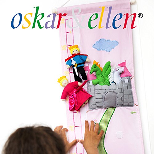 北欧スウェーデンのファブリック・トイ・メーカーOskar&Ellen(オスカー&エレン社)の布製身長計です。子供部屋をより一層可愛らしく演出してくれそうなハンドメイドの身長計です。 プリンセスがモチーフの身長計は、女の子のお部屋にピッタリです♪ 吊り下げ用の紐がついていますので、子供部屋に簡単に飾ることができます。 可愛いお人形はマジックテープで取り外しできますので、身長の目印として使用できます。 30cmから150cmまで計測できます。 お洗濯も可能です。お手入れは、40℃のぬるま湯で手洗いをして下さい。 素敵な身長計で、お子さまの日々の成長を見守ってみてはいかがですか? 子供部屋のインテリアにオススメです。