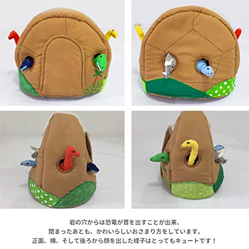 岩の穴からは恐竜が首を出すことが出来、閉まったあとも、かわいらしいおさまり方をしています。