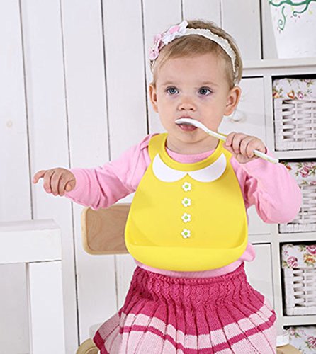 赤ちゃん幼児用食品キャッチャーと防水細菌抵抗性ソフト シリコン ベビービブ (黄-小さな女の子)