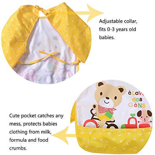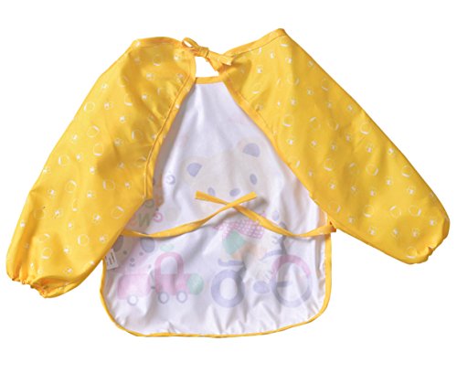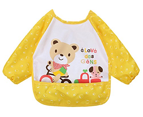防水のかわいい漫画長袖幼児幼児赤ちゃんのための授乳よだれかけエプロン、0-3歳 (黄)