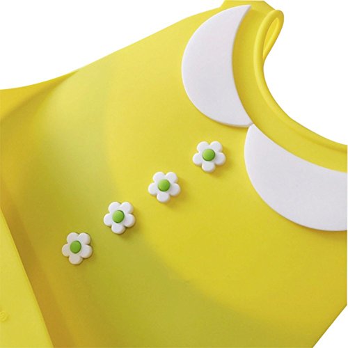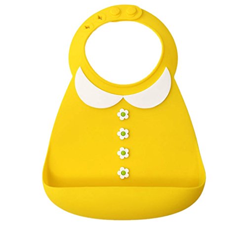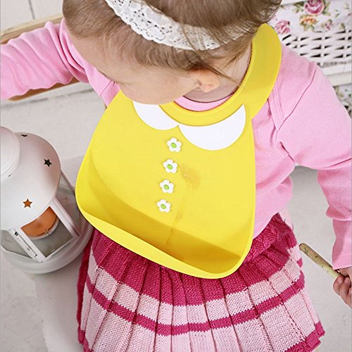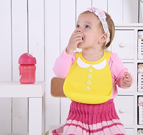 赤ちゃん幼児用食品キャッチャーと防水細菌抵抗性ソフト シリコン ベビービブ (黄-小さな女の子)