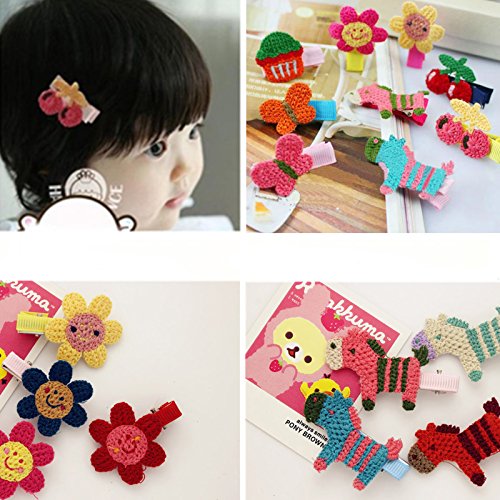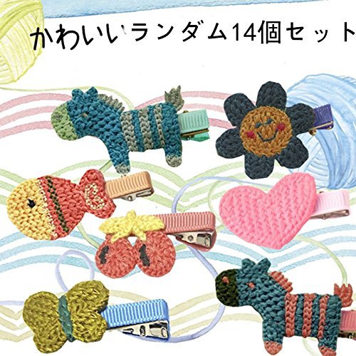 Oujyo かわいいおしゃれニットハンドメイドヘアクリップ ヘアゴム ヘアピン ランダム14個セット 女の子ママ通用ヘアアクセサリー レディース小物アクセサリーキッズ (ヘアクリップ)