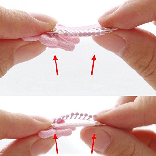 - クリップをリボンで巻いてますので、クリップが頭に刺さる心配がありません、新生赤ちゃんでも使えます。