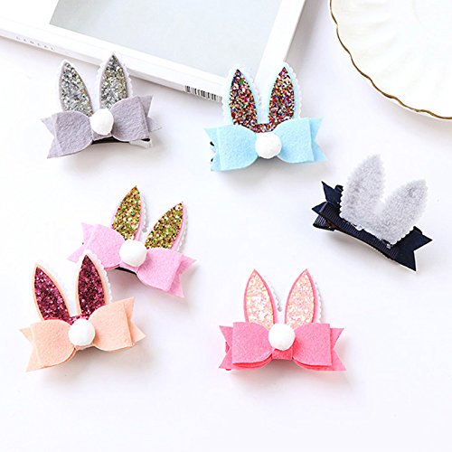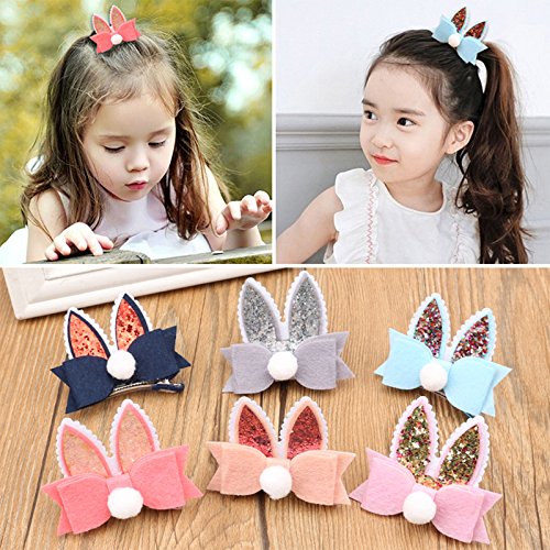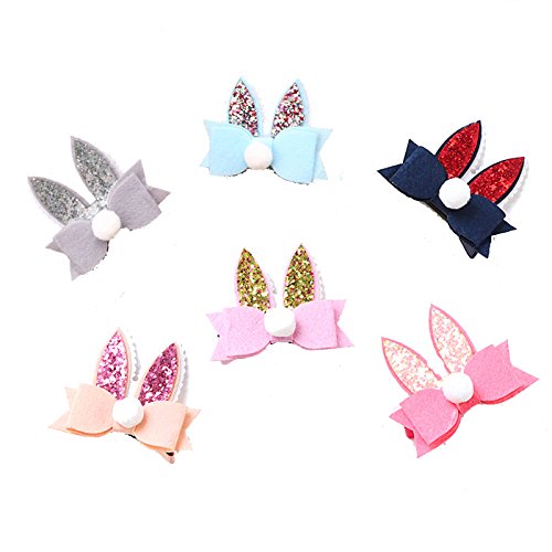 Oujyo うさぎのお耳とリボンがかわいい キュートなヘアクリップ ヘアピン 前髪クリップ ヘアアクセサリー カラフル 6点セット 子供日 出産お祝い 誕生日プレゼント お盆 お宮参り 三五七