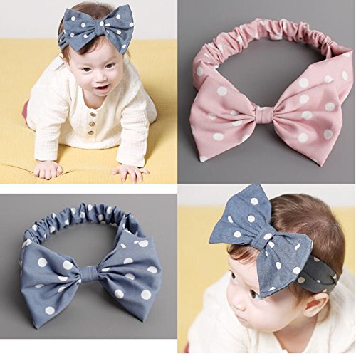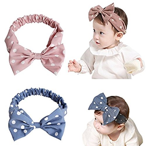 Oujyo 二つセット 大きめリボン赤ちゃんヘアバンド ベビー キッズ ドット ヘッドバンド アクセサリー ゴム プレゼント 発表会 かわいい 撮影 お宮参り 誕生日