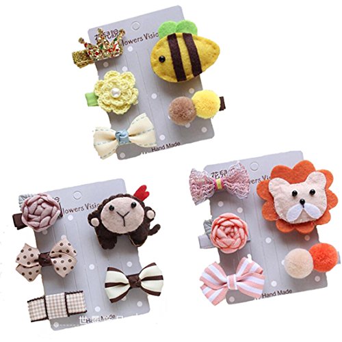 Oujyo 安全なヘアクリップ ヘアピン 前髪クリップ 可愛い 動物 お花 カラフル15点セット 赤ちゃん ベビー 女の子 ヘアアクセサリー 髪飾り キュート