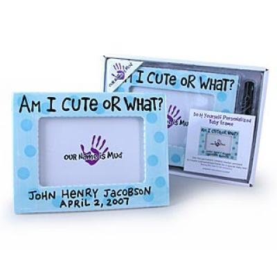 includes special ceramic personalization marker so you can personalize frame with baby's name & any other sentiments! Have fun and make it personal!;features whimsical, guaranteed-giggle phrase Am I Cute or What? which this baby surely is!;easy to follow personalization instructions included - even a child can do it!;makes a fabulous gift not only for the proud new parents, but new parents can make them for the proud new grandparents, aunts, uncles, friends - you get the picture!