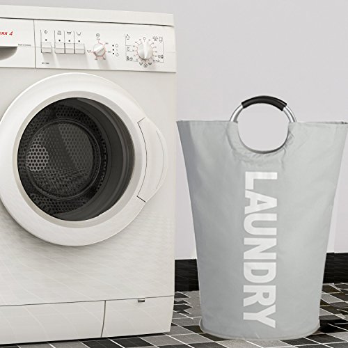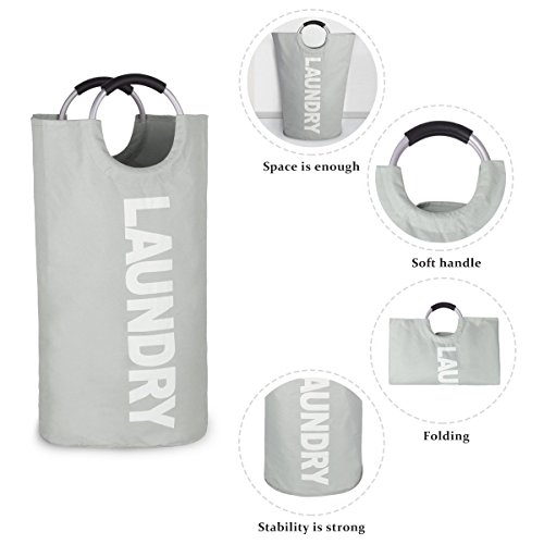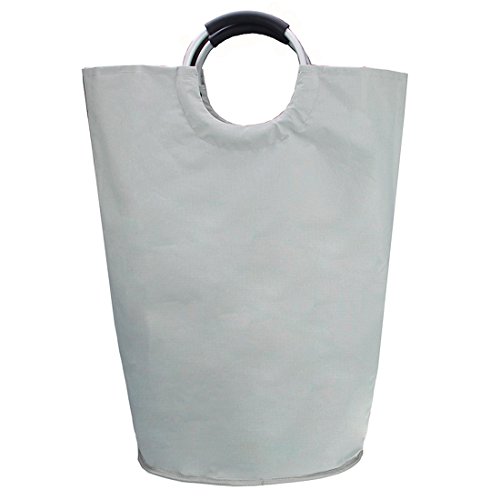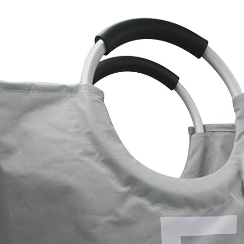 outdoorflyランドリーバスケット、簡単収納Laundry Hamper with Handles、折りたたみ服バッグ、折りたたみ式洗濯Bin , Self Standing for College寮キャンパー グレー