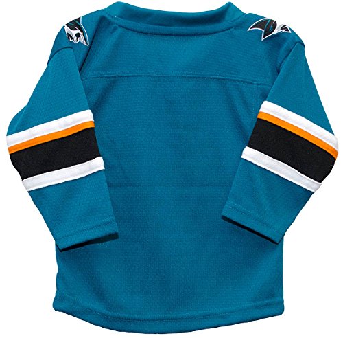 San Jose Sharksチームカラー子供のジャージです。NHLによってライセンス。サイズは幼児12 – 24ヶ月、就学前幼児2 – 4、4 – 7にすることができます。のサイズ大きめ疑問が向上させることができます。